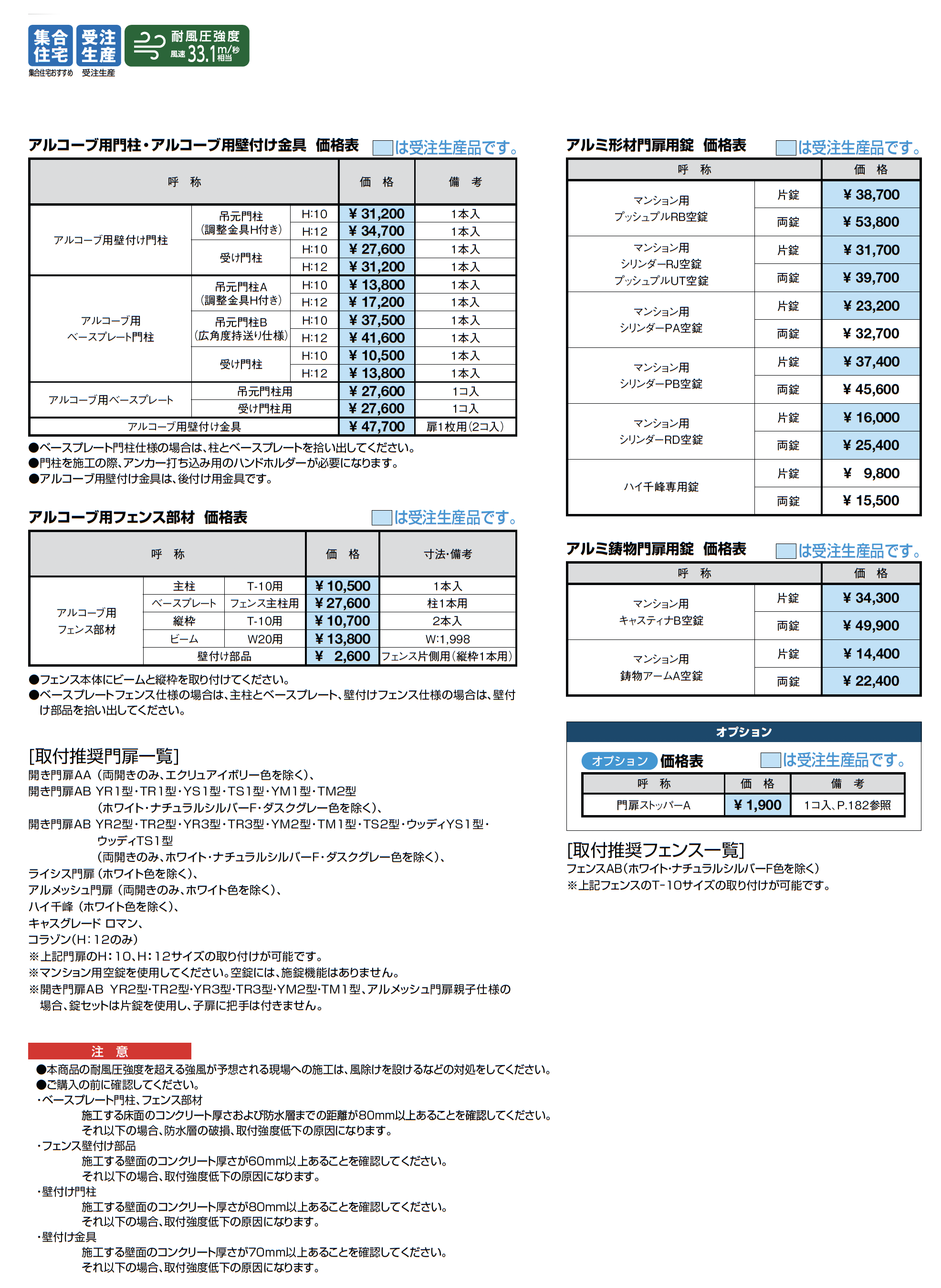 | 強度 | 耐風圧強度風速33.1m/秒相当 |