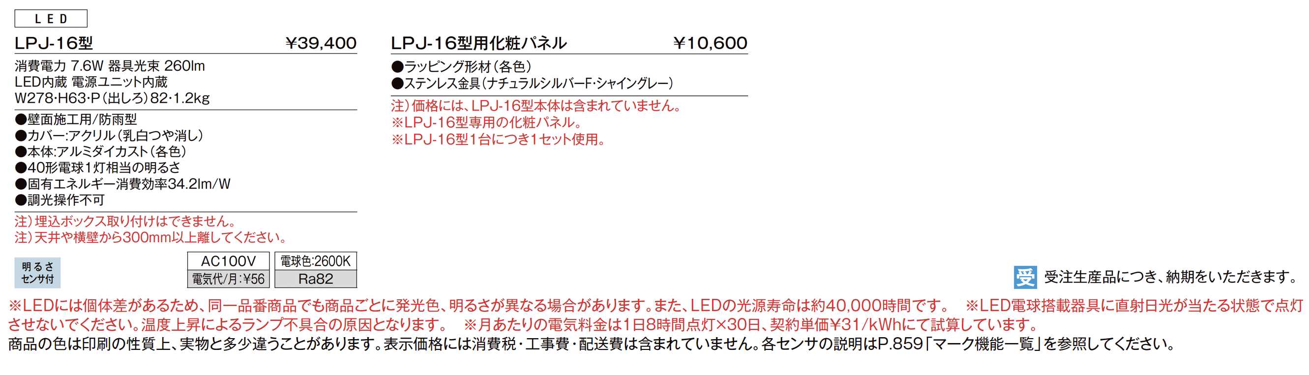 表札灯 LPJ-16型【2022年版】(エクステリア総合カタログ2022-2023)