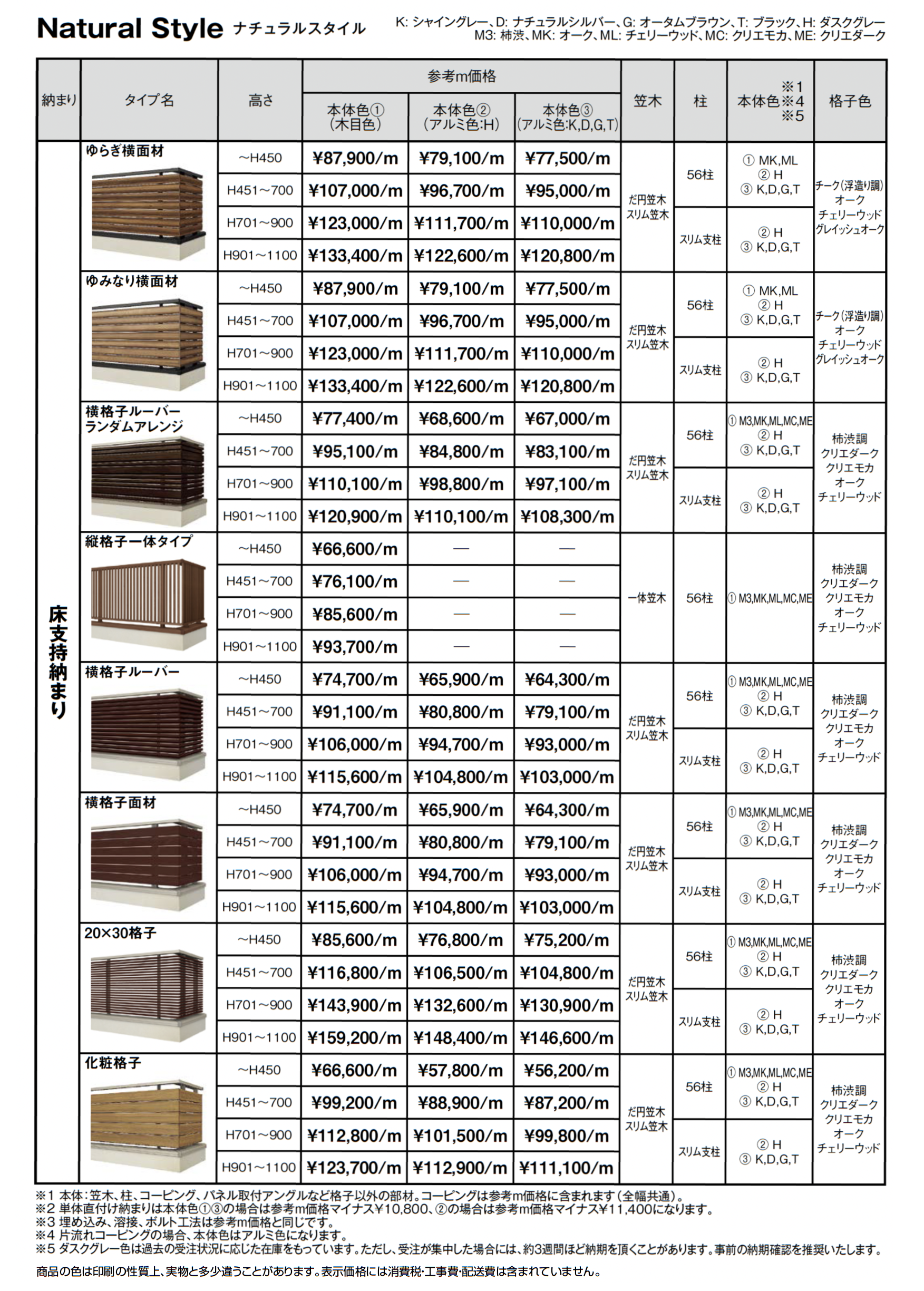 | カラー | シャイングレー ナチュラルシルバー オータムブラウン ブラック ダスクグレー 柿渋 オーク チェリーウッド クリエモカ クリエダーク チーク(浮造り調) グレイッシュオーク 柿渋調 |