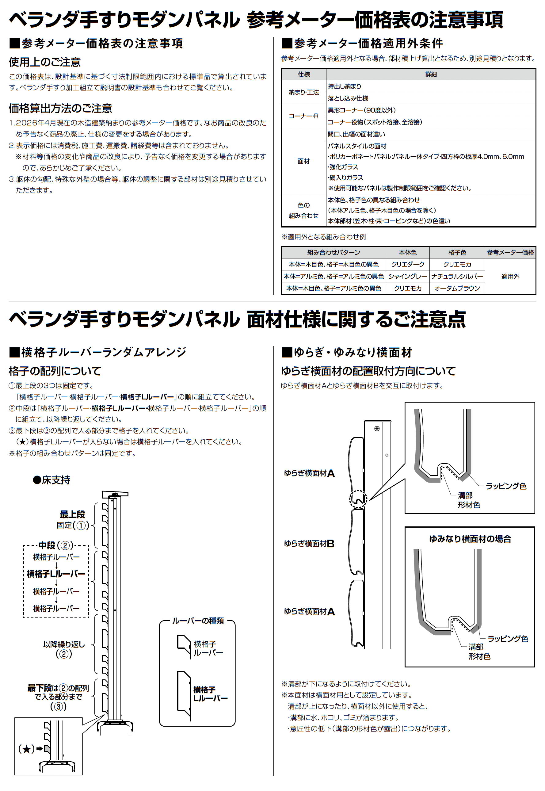 | デザイン | 20×30格子 ゆみなり横面材 ゆらぎ横面材 化粧格子 横格子ルーバー 横格子ルーバーランダムアレンジ 横格子面材 縦格子一体タイプ |