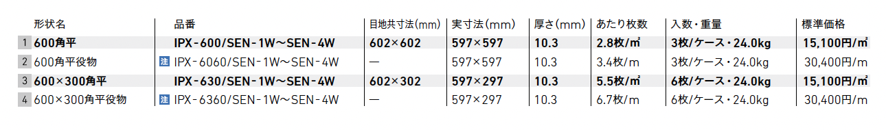 | カラー | SEN-1W SEN-2W SEN-3W SEN-4W |