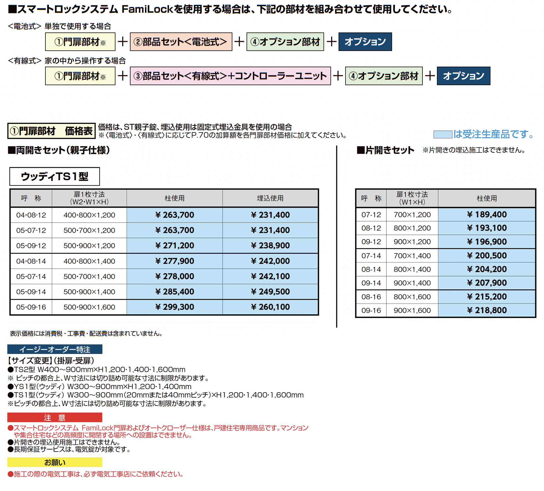 | デザイン | 両開き親子仕様(柱使用・埋込使用) 片開き(柱使用) |