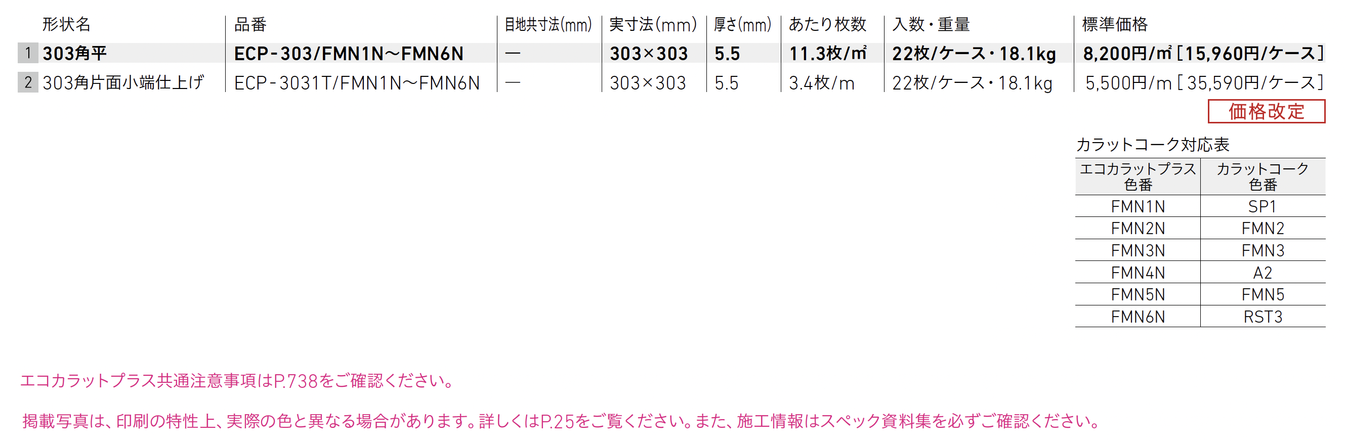 | 新旧品 | エコカラットプラス フェミーナ【2025年版】(2025タイル建材総合カタログ) |