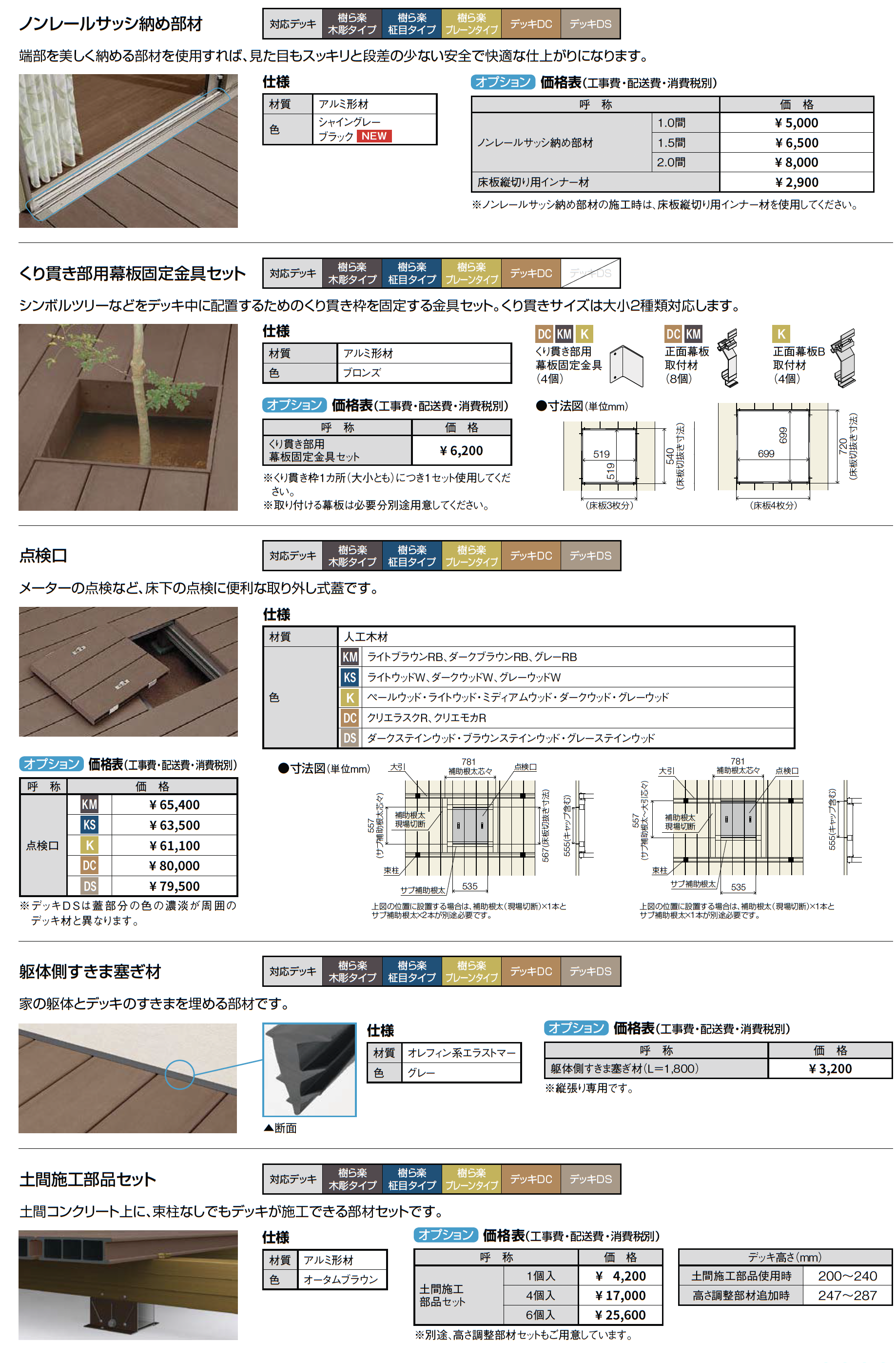 | 材質 | 人工木材(木材・プラスチック再生複合材) アルミ形材 |