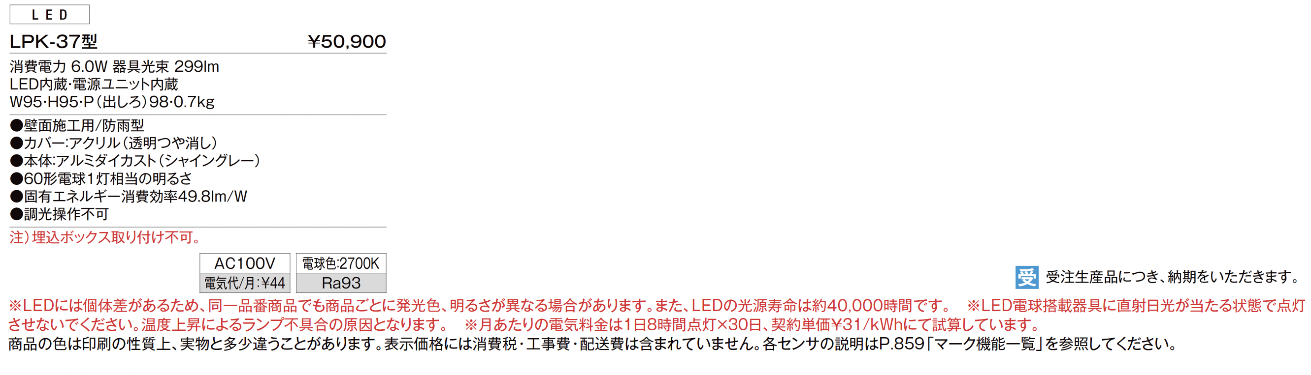ウォールライト LPK-37型【2022年版】(エクステリア総合カタログ2022-2023)