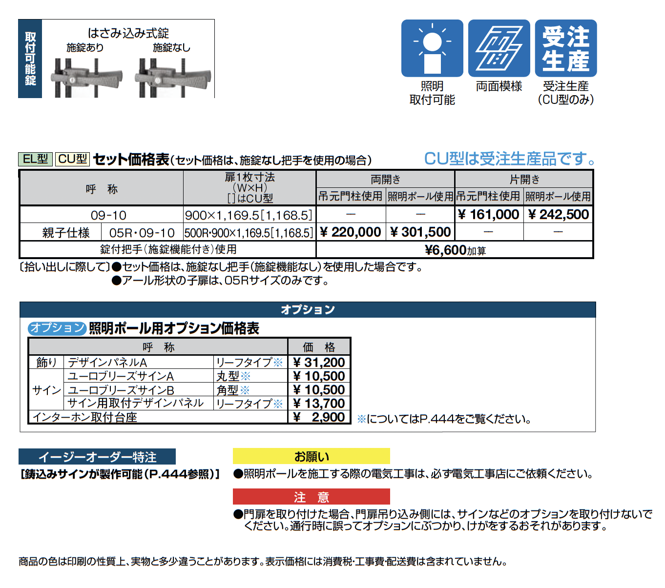 片開き・照明ポール仕様