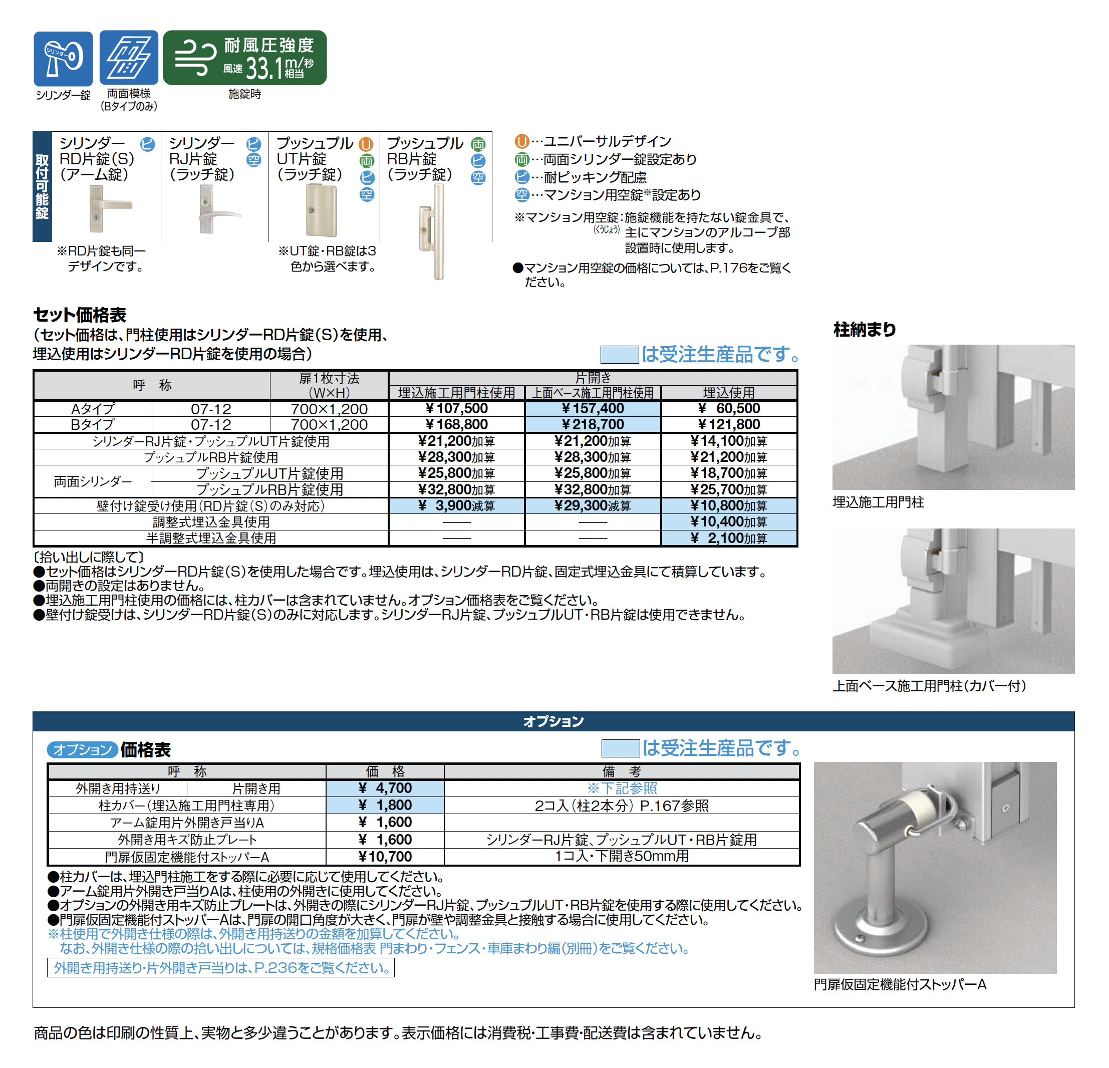 | デザイン | 片開き 片開き・上面ベース施工用門柱使用 片開き・埋込使用 片開き・埋込施工用門柱使用 縦格子 |