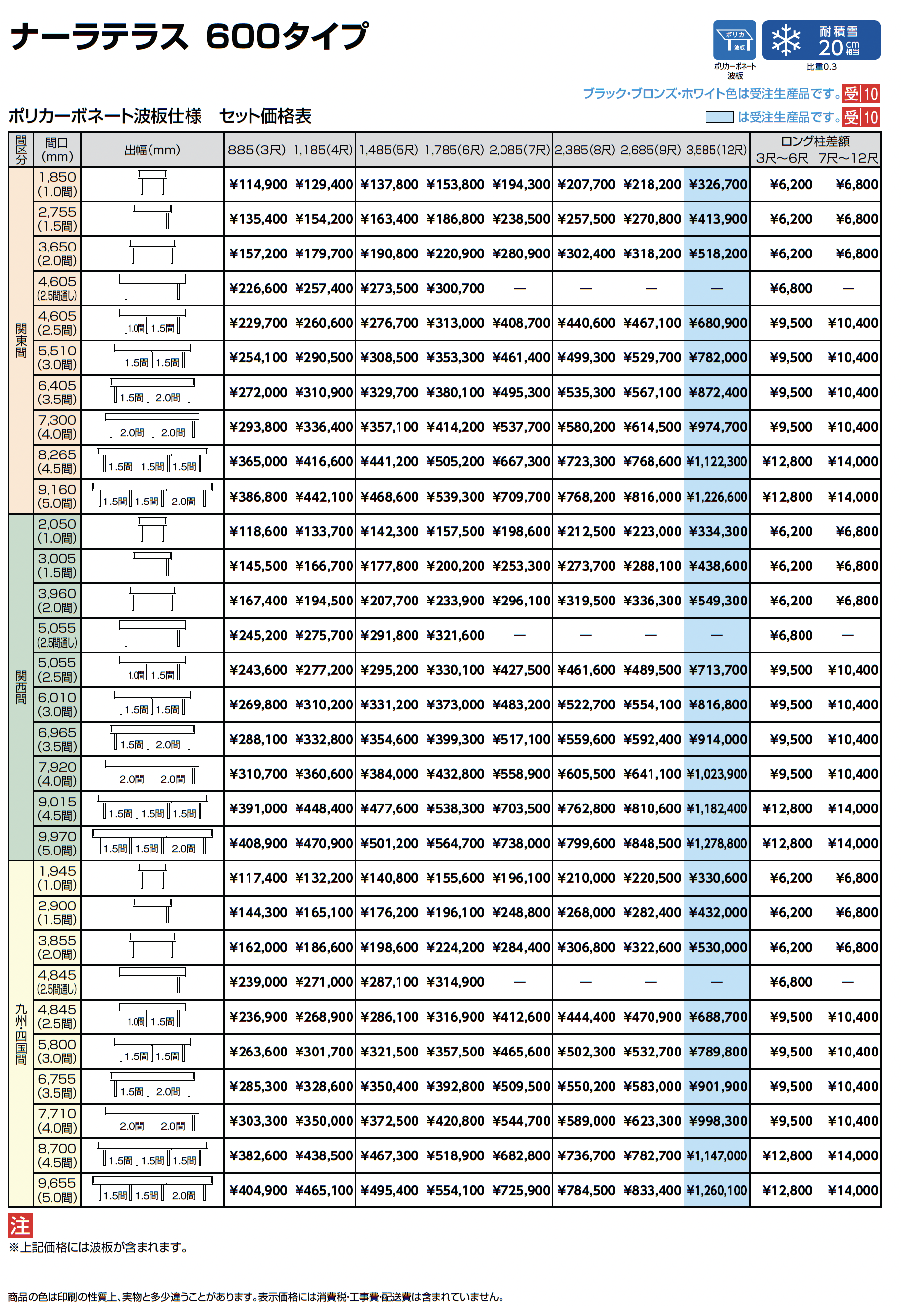 | デザイン | テラス・1階用 バルコニー(柱あり) フラット(F型) 波板 |