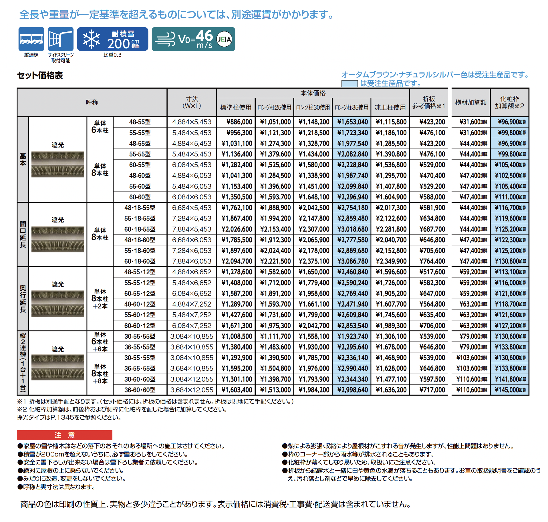 | 強度 | 耐積雪200cm相当 基準風速V0=46m/s |