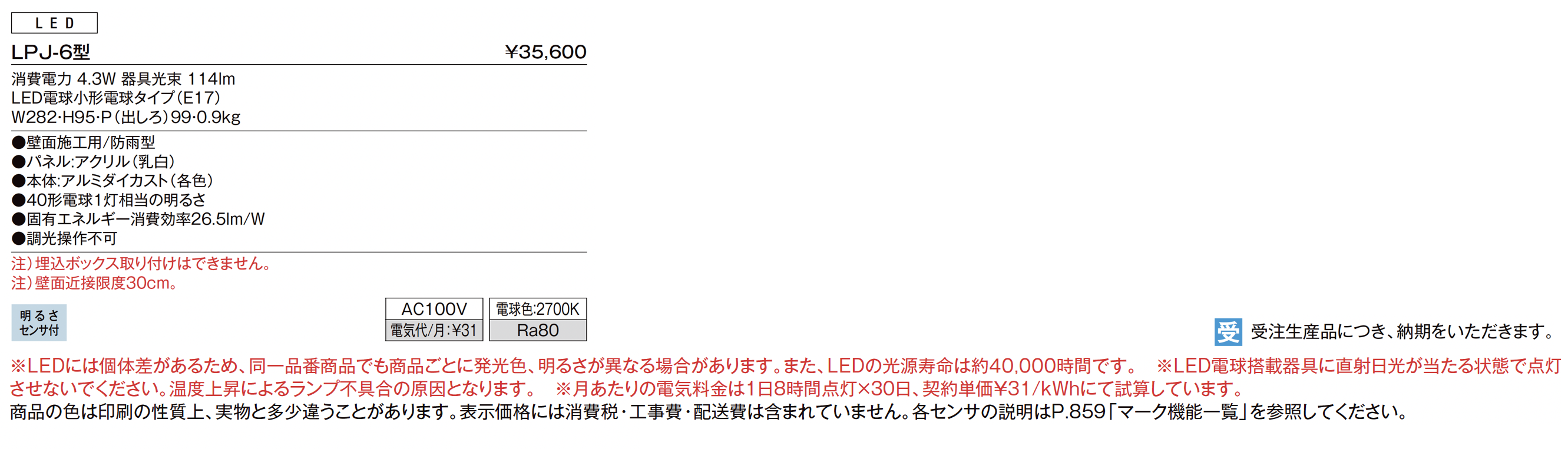 表札灯 LPJ-6型【2023年版】(エクステリア総合カタログ2023-2024)