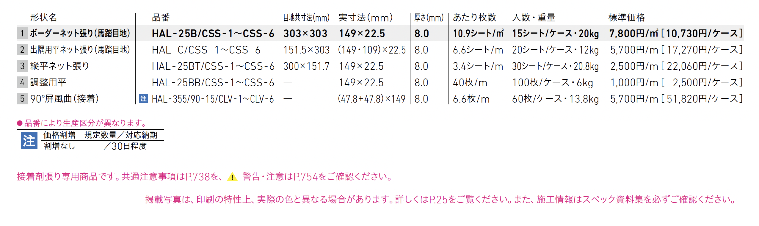 | 標準納期 | 品番により生産区分が異なります。 |