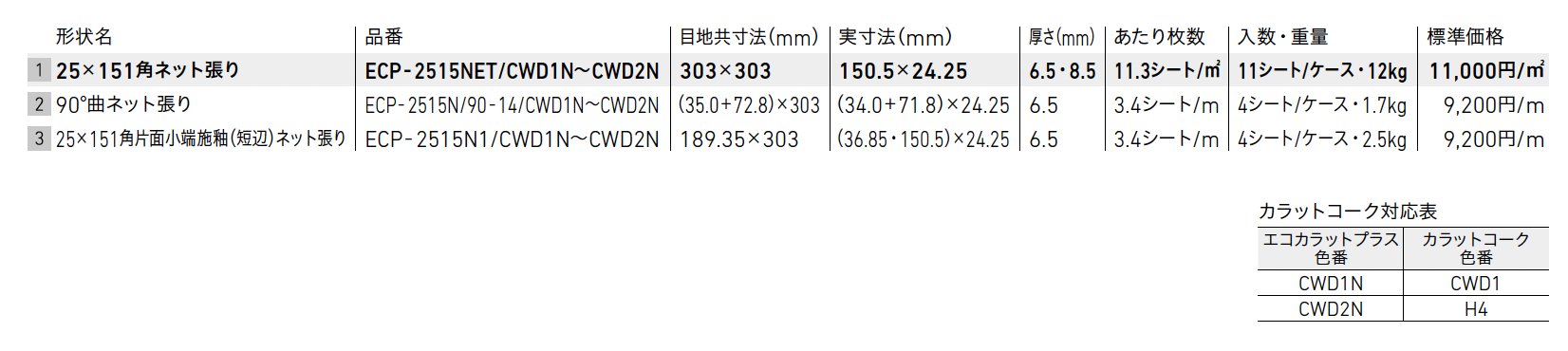 即納対応:50㎡以下 品切れ時対応納期:納期確認 品番により生産区分が異なる場合がございます。