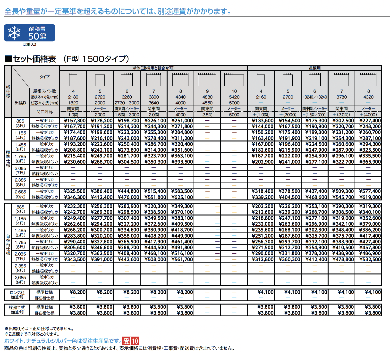 | 強度 | 耐積雪30cm相当 耐積雪50cm相当 |