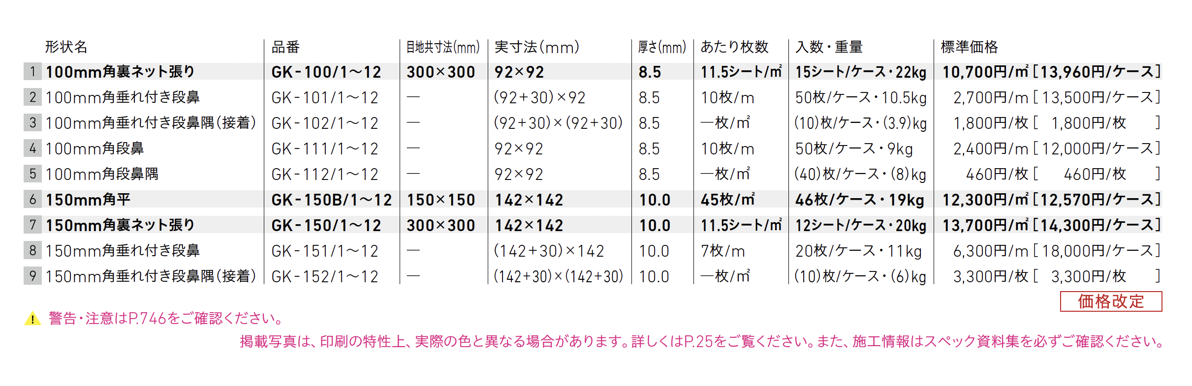 | 新旧品 | ニュージーネット100・150【2025年版】(2025タイル建材総合カタログ) |