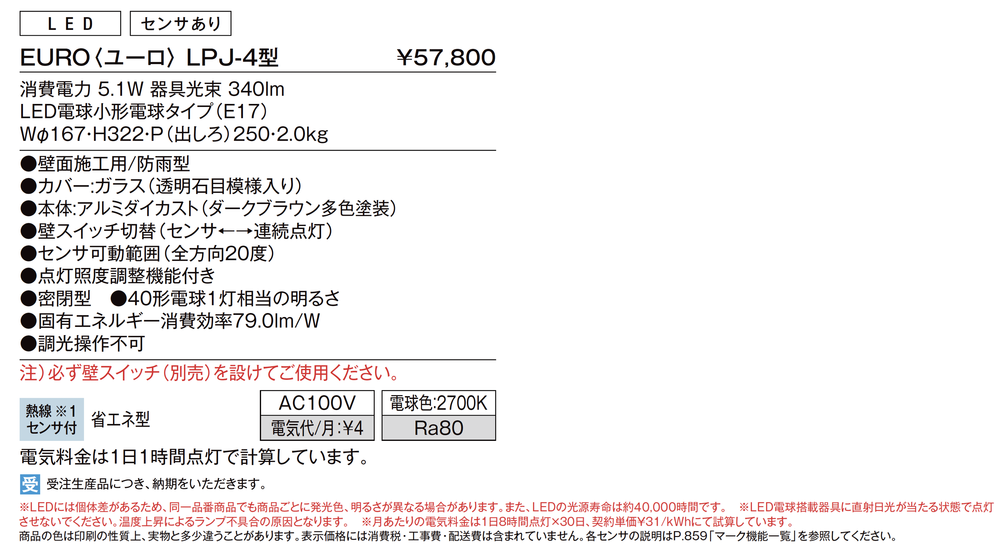 ポーチライト EURO〈ユーロ〉LPJ-4型【2023年版】(エクステリア総合カタログ2023-2024)