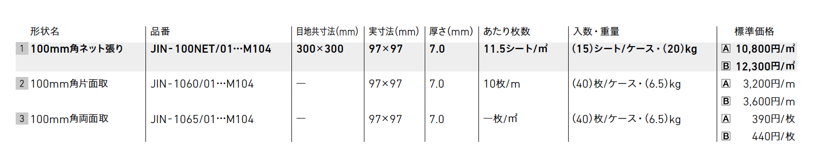 | 標準納期 | 即納対応:100㎡以下 品切れ時対応納期:納期確認 品番により生産区分が異なる場合がございます。 |