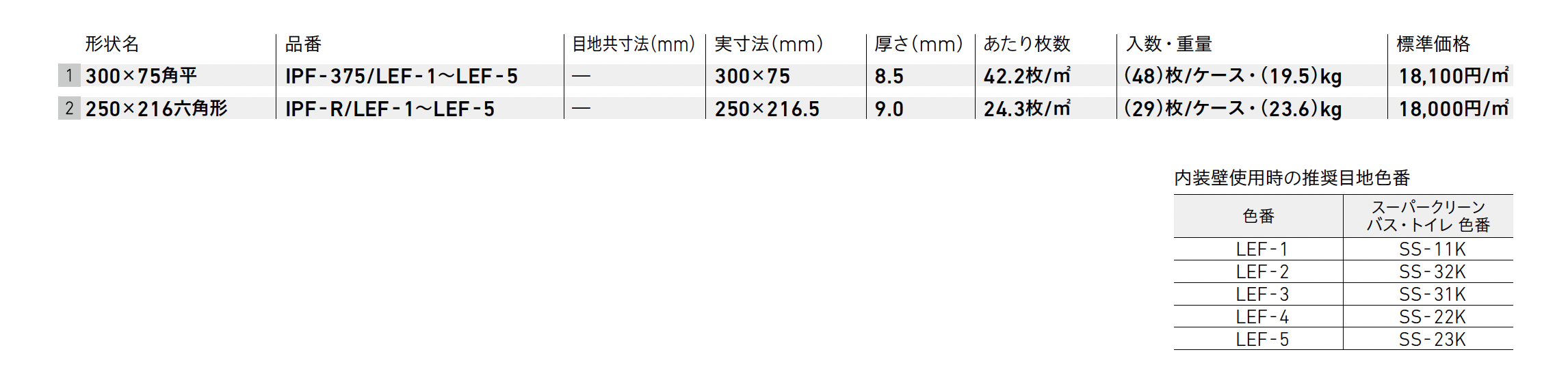 | カラー | LEF-1 LEF-2 LEF-3 LEF-4 LEF-5 |