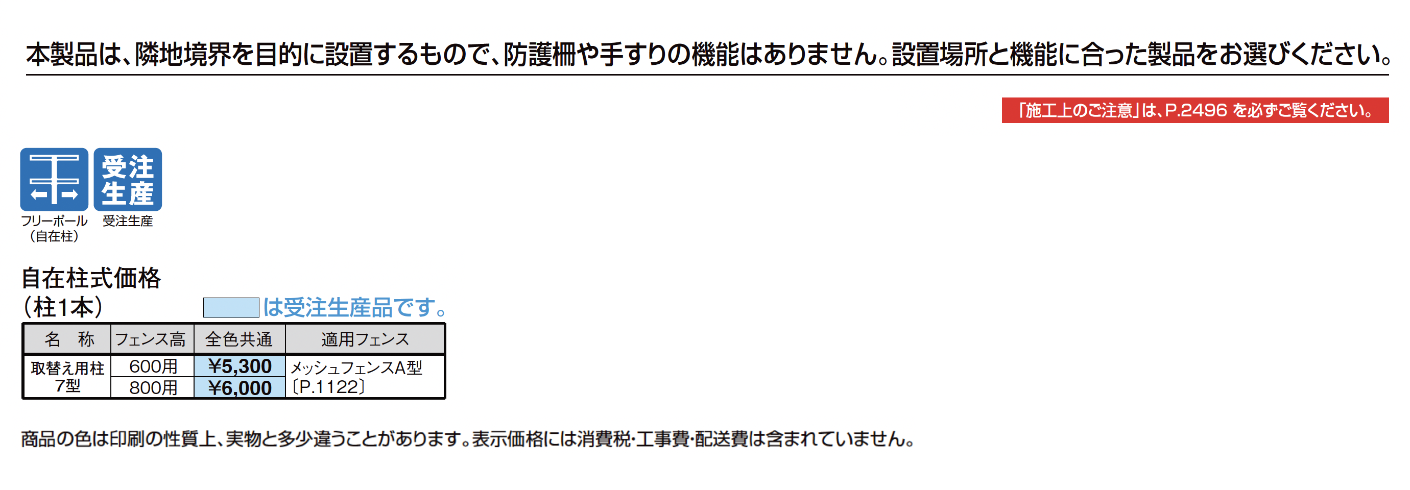 フェンス取替え用柱 7型【2024年版】(エクステリア総合カタログ2024-2025)