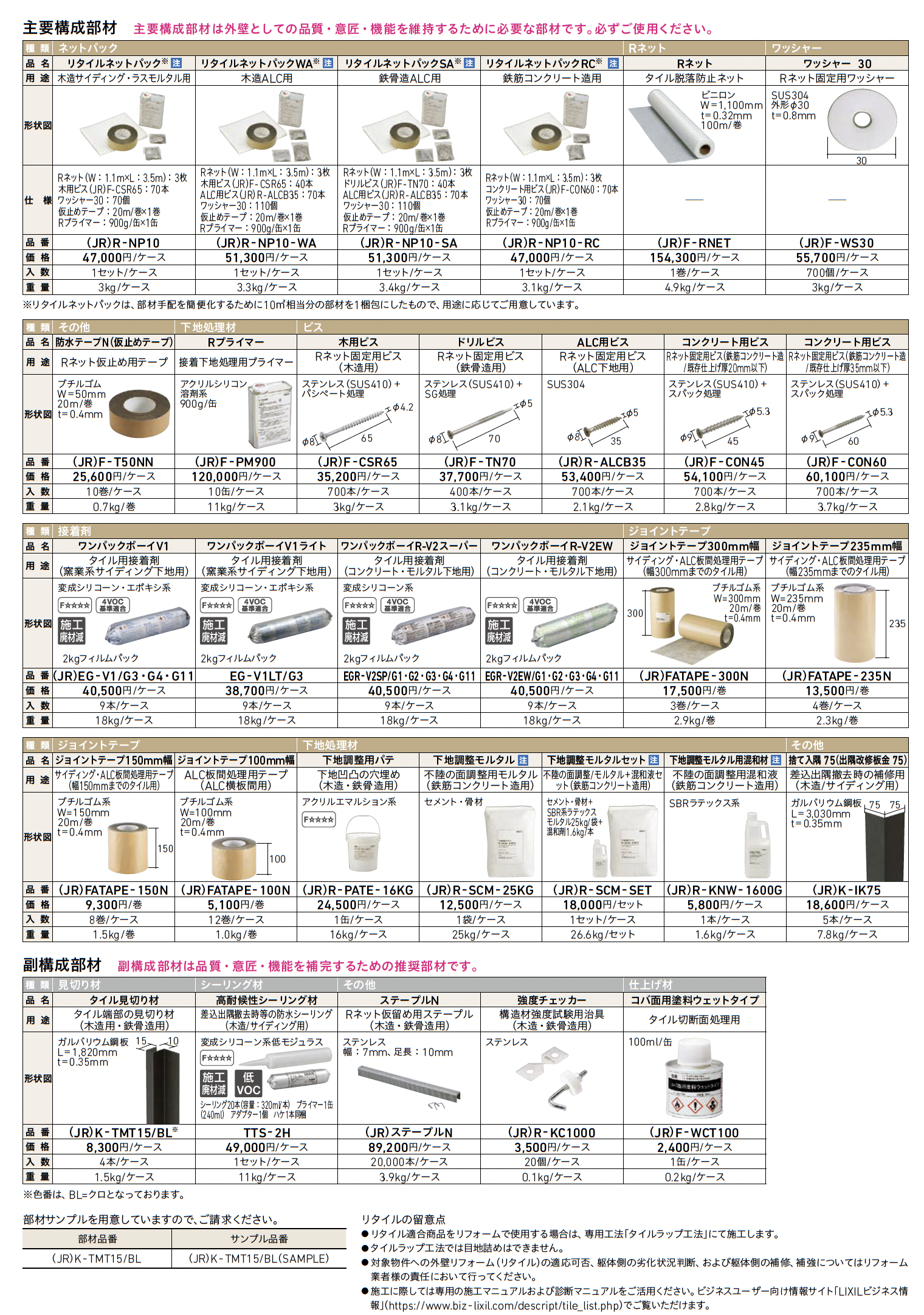 外壁リフォーム リタイル 主要構成部材・副構成部材