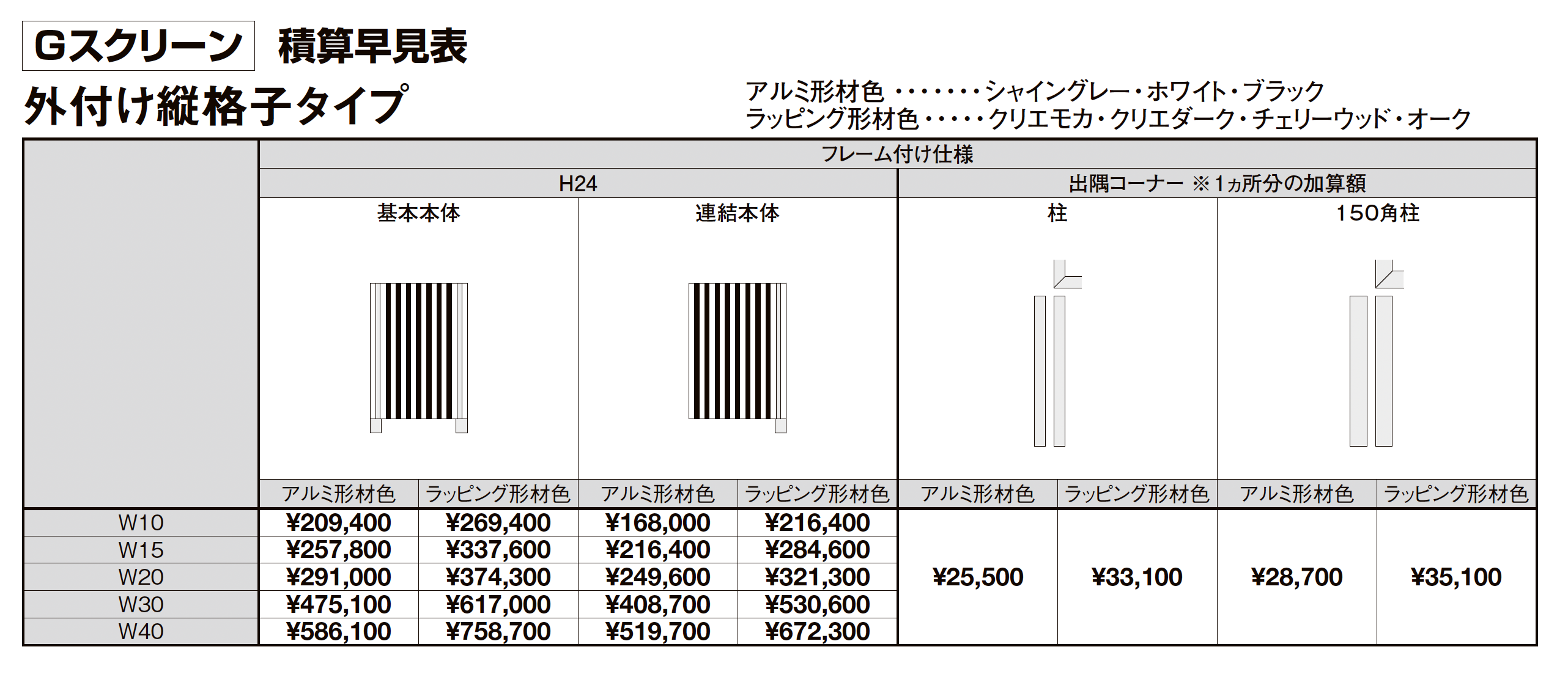 | 新旧品 | プラスG Gスクリーン 外付け縦格子タイプ【2025年版】(エクステリア総合カタログ2025-2026)プラスG Gスクリーン 外付け縦格子タイプ【2024年版】(エクステリア総合カタログ2024-2025) |