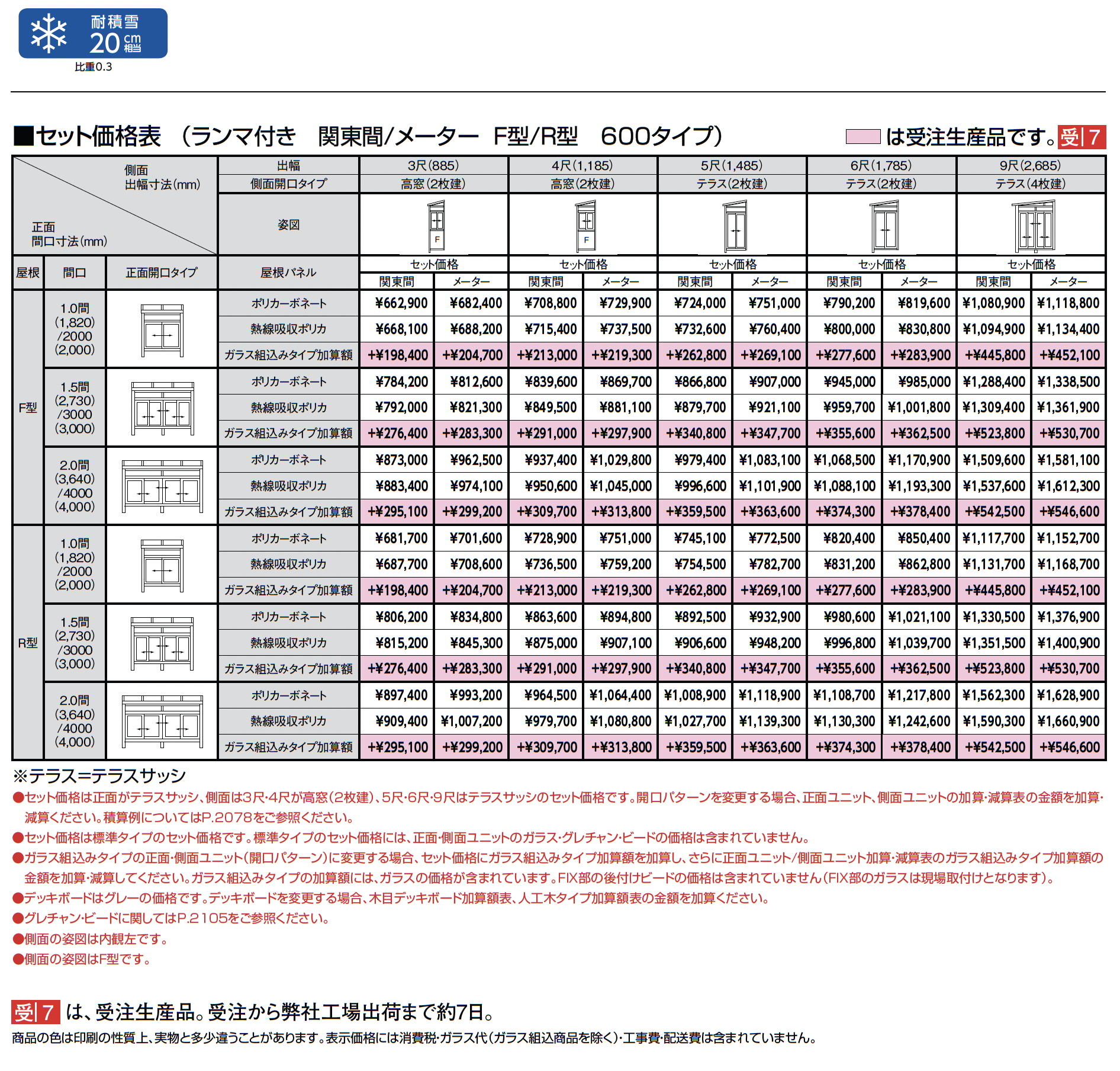 | 強度 | 耐積雪20cm相当 耐積雪50cm相当 耐積雪100cm相当 |