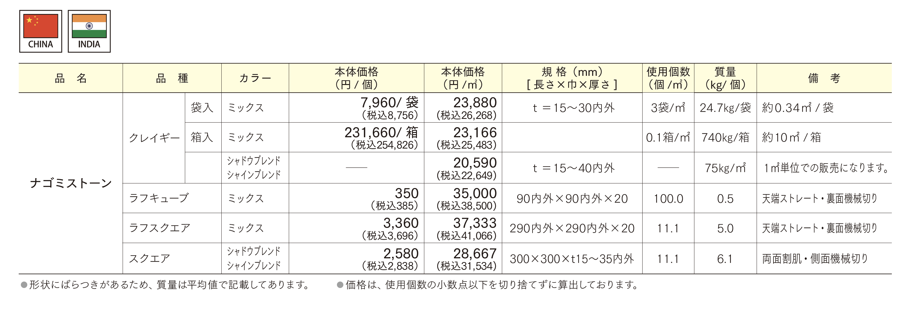 ナゴミストーン クレイギー/ラフスクエア/スクエア/ラフキューブ