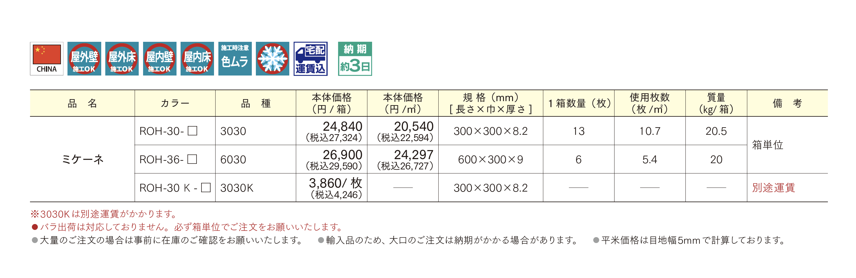 | カラー | ROH-30-10 ROH-30-20 ROH-30-30 ROH-30-40 ROH-30-50 |