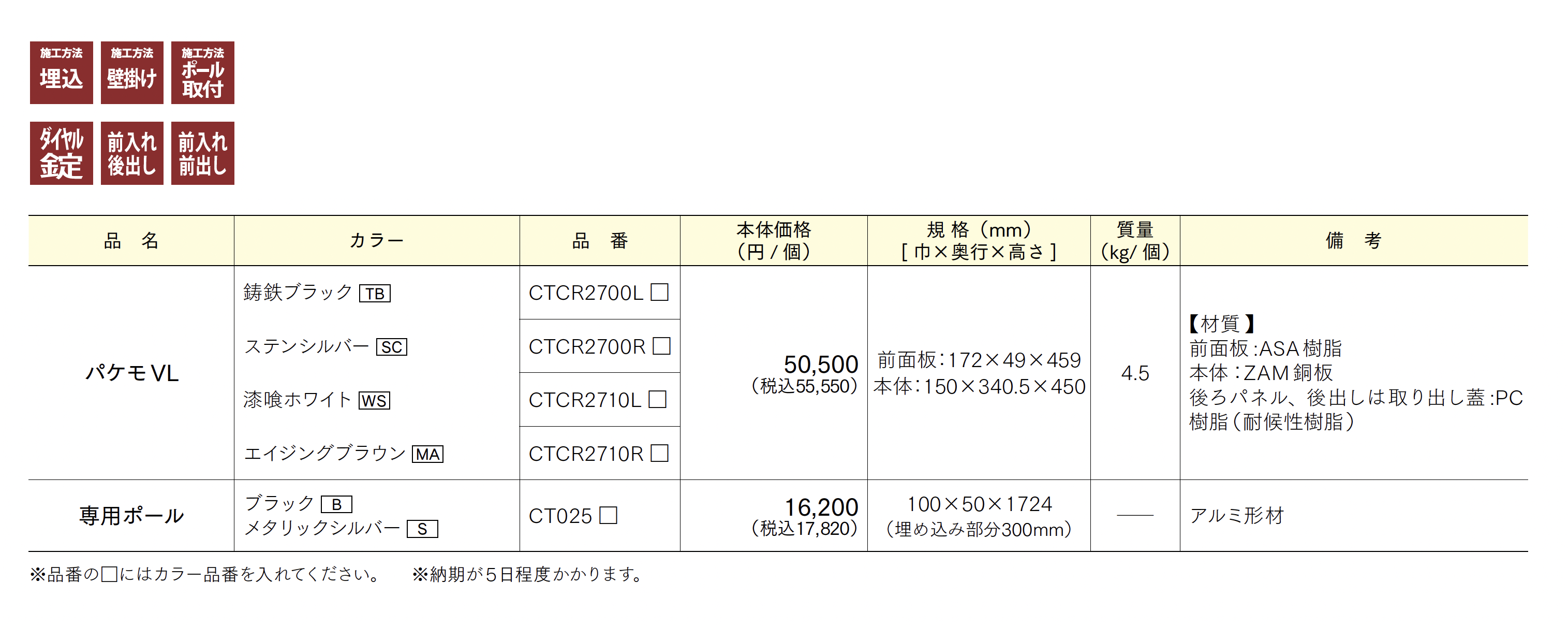 | 新旧品 | パケモVL【2025年版】(エクステリア商品総合カタログ2025-2026)パケモVL【2024年版】(エクステリア商品総合カタログ2024-2025) |