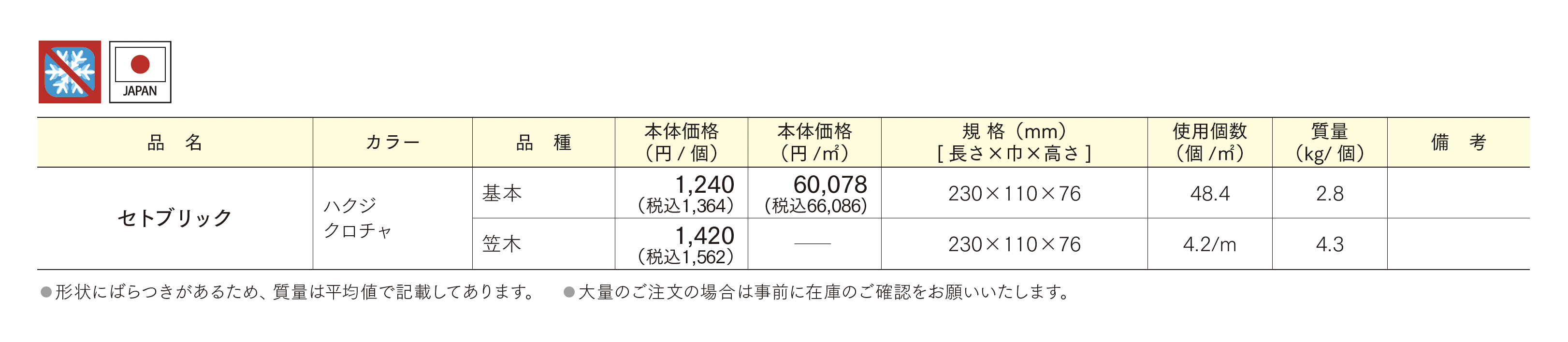 | 新旧品 | セトブリック【2025年版】(エクステリア商品総合カタログ2025-2026)セトブリック【2024年版】(エクステリア商品総合カタログ2024-2025) |