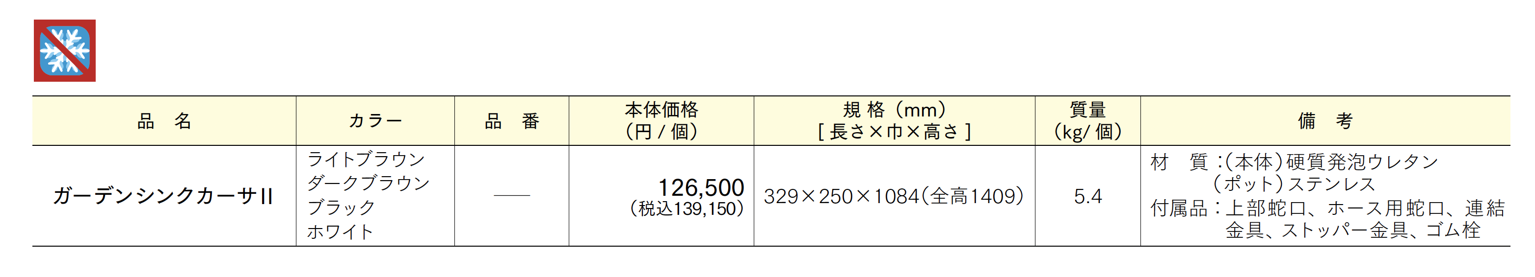 | 新旧品 | ガーデンシンクカーサⅡ【2025年版】(エクステリア商品総合カタログ2025-2026)ガーデンシンクカーサⅡ【2024年版】(エクステリア商品総合カタログ2024-2025) |