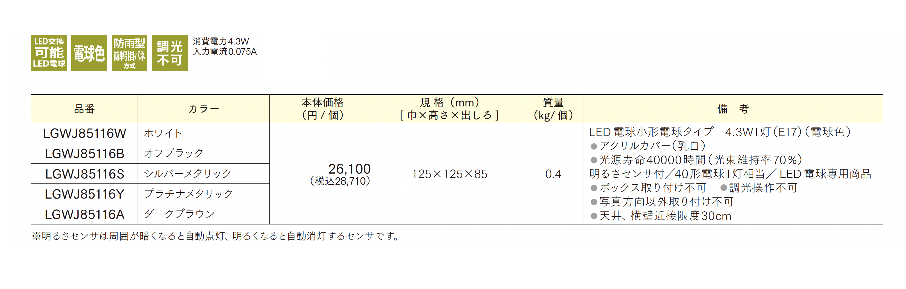 | 新旧品 | LED表札灯 遮光タイプ【2025年版】(エクステリア商品総合カタログ2025-2026)LED表札灯 遮光タイプ【2024年版】(エクステリア商品総合カタログ2024-2025) |