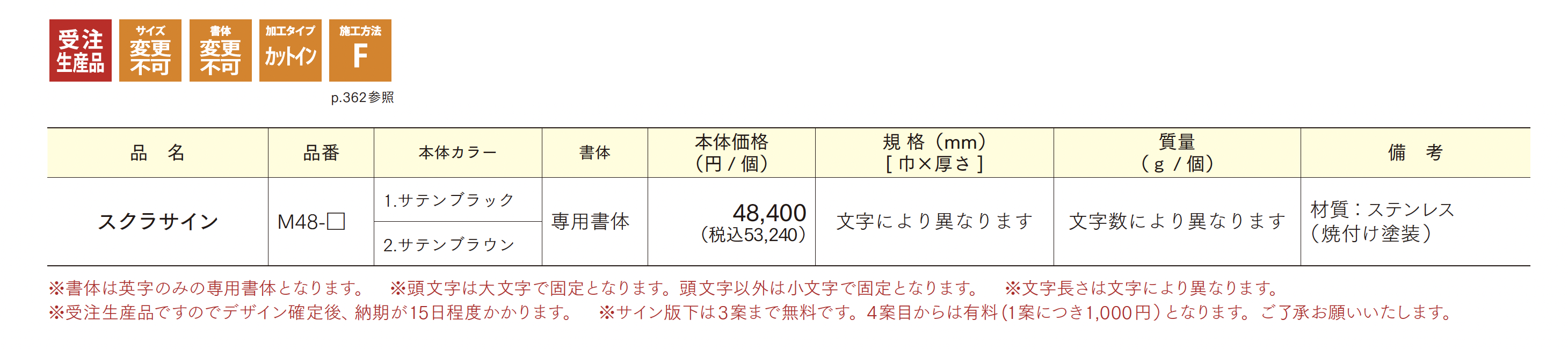 | 標準納期 | 受注生産品/15日程度 |
