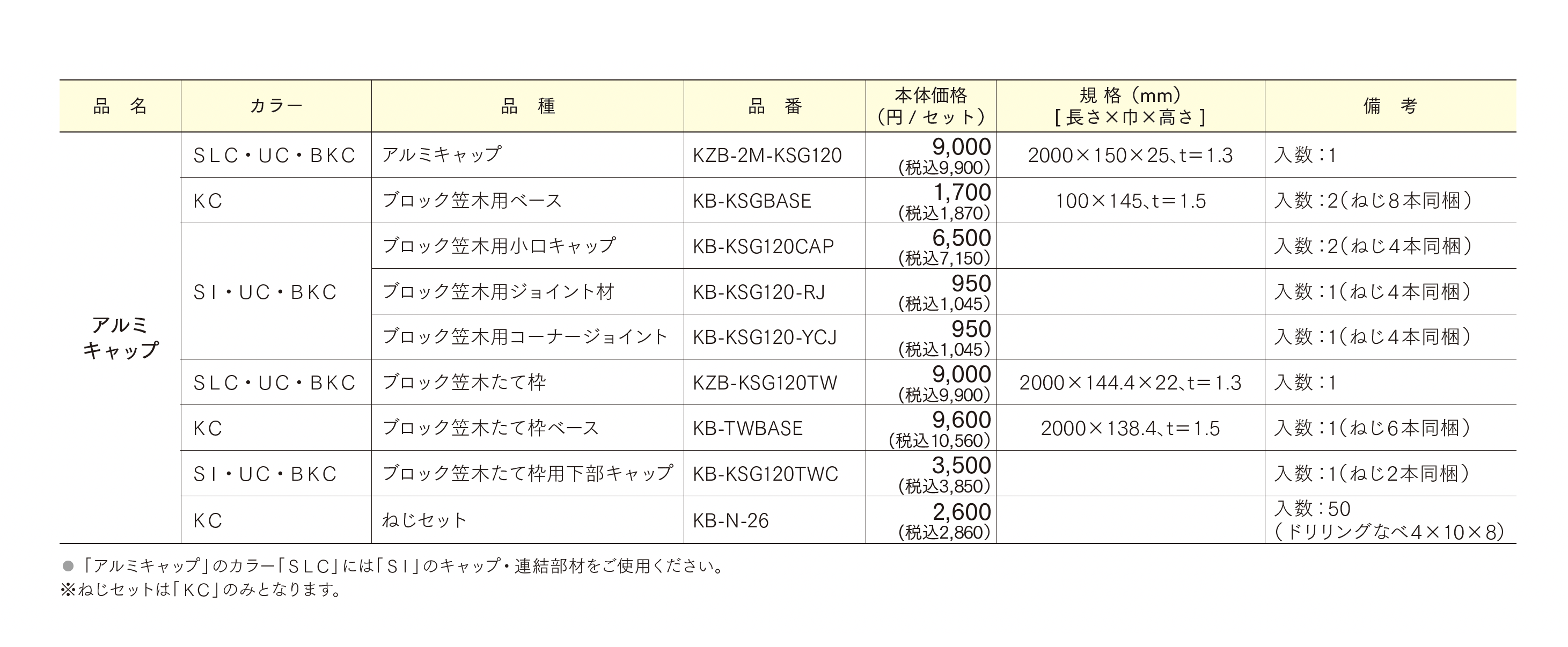 | カラー | SLC UC BKC SI KC |