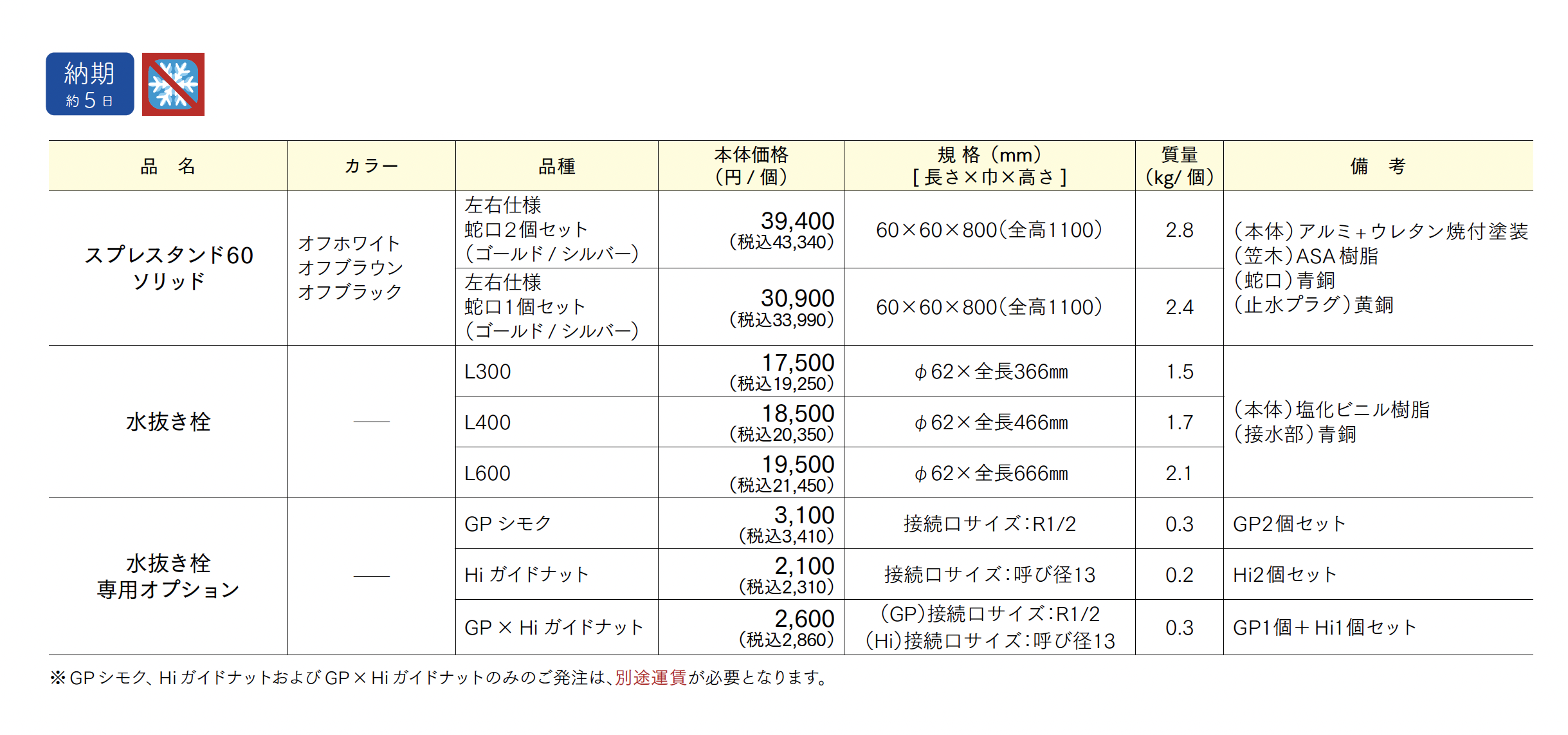 | 標準納期 | 約5日 |