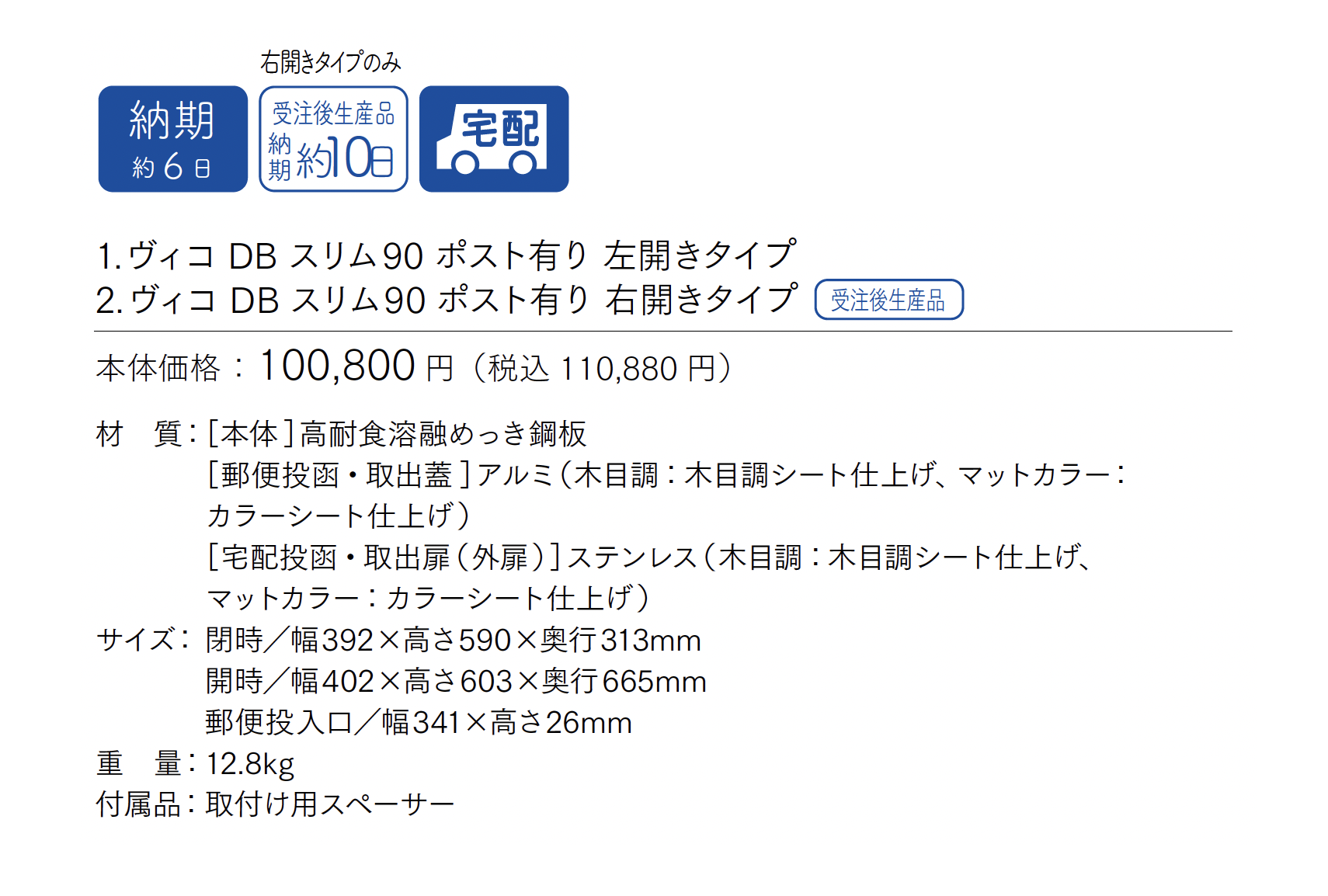 | 新旧品 | ヴィコDB スリム 90 ヴィコDBポスト有り【2025年版】(エクステリア商品総合カタログ2025-2026)ヴィコDB スリム 90 ヴィコDBポスト有り【2024年版】(エクステリア商品総合カタログ2024-2025) |