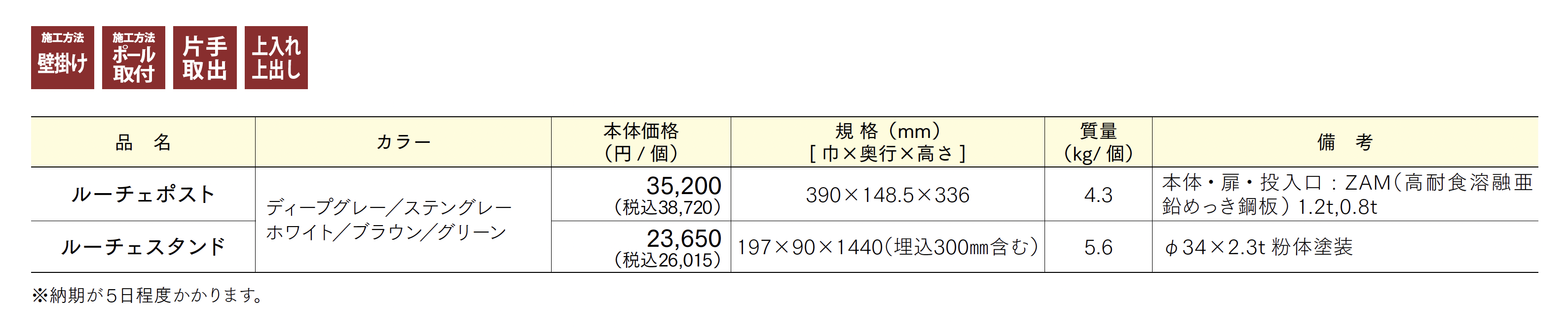 | 標準納期 | 5日程度 |