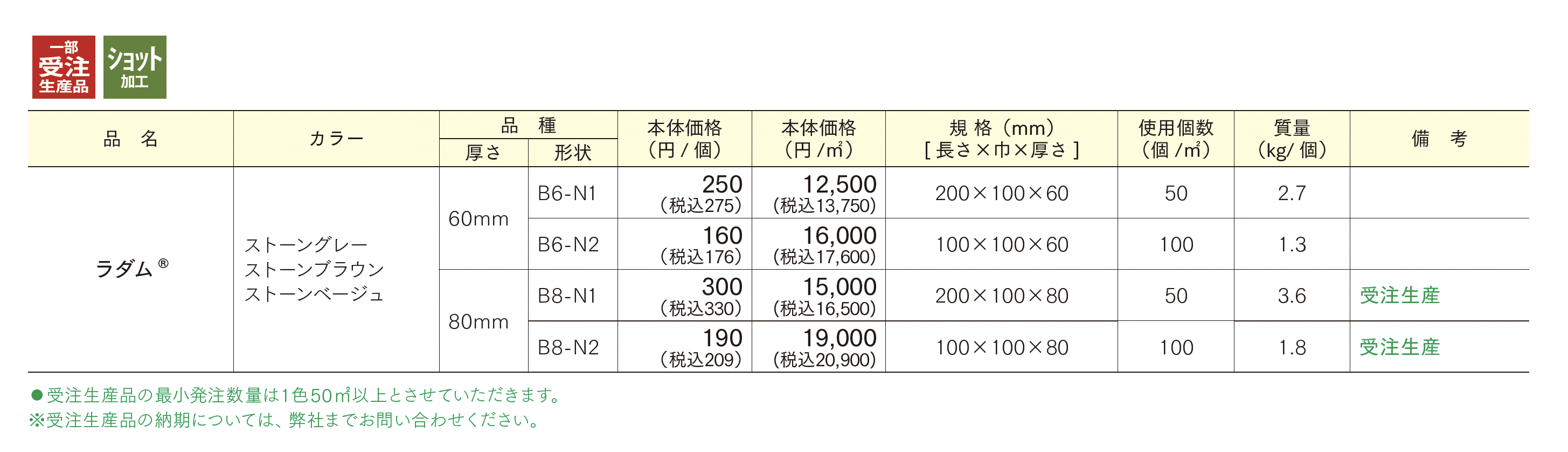 | 標準納期 | 一部受注生産品/要確認 |