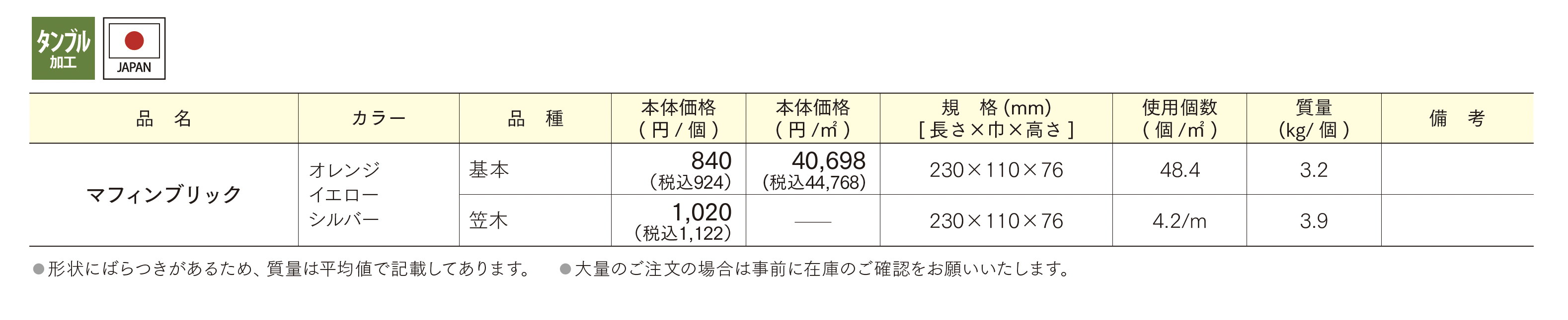 | 新旧品 | マフィンブリック【2025年版】(エクステリア商品総合カタログ2025-2026)マフィンブリック【2024年版】(エクステリア商品総合カタログ2024-2025) |