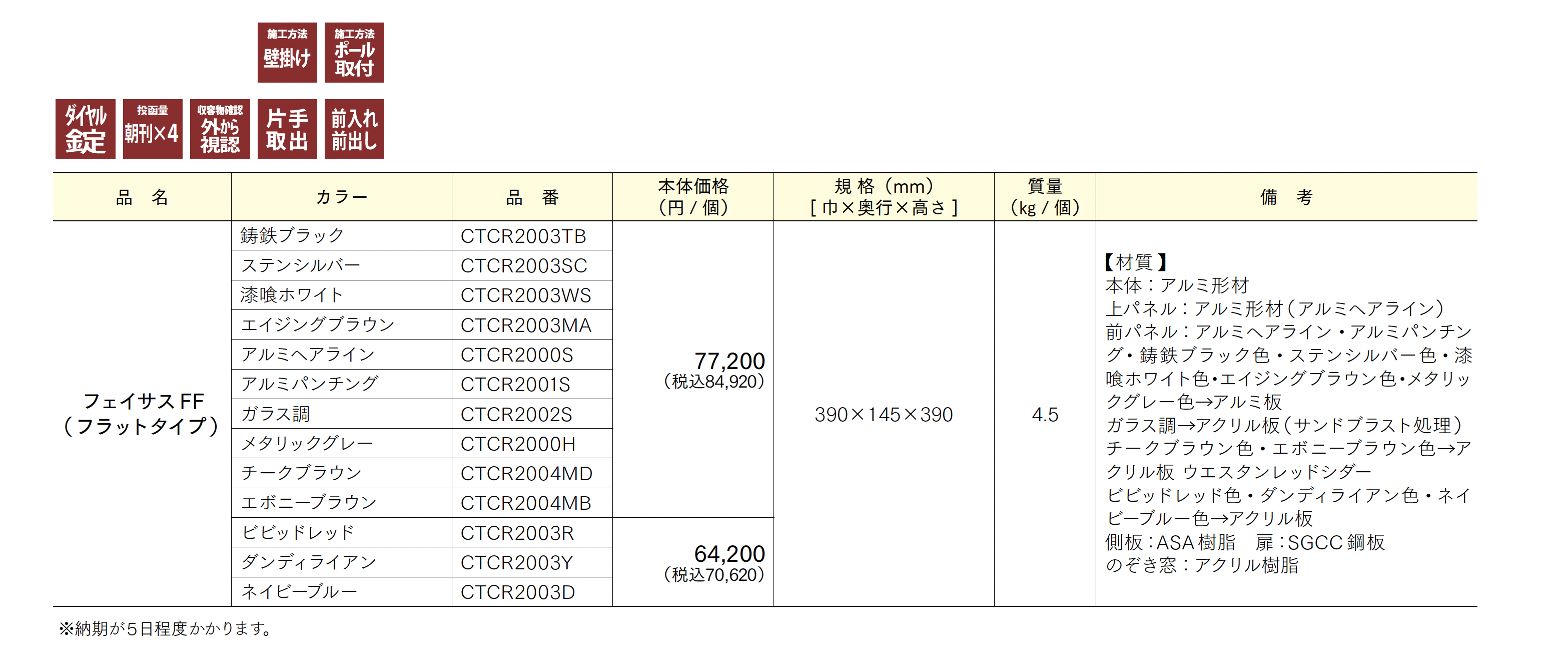 | 新旧品 | フェイサスFF(フラットタイプ)【2025年版】(エクステリア商品総合カタログ2025-2026)フェイサスFF(フラットタイプ)【2024年版】(エクステリア商品総合カタログ2024-2025) |