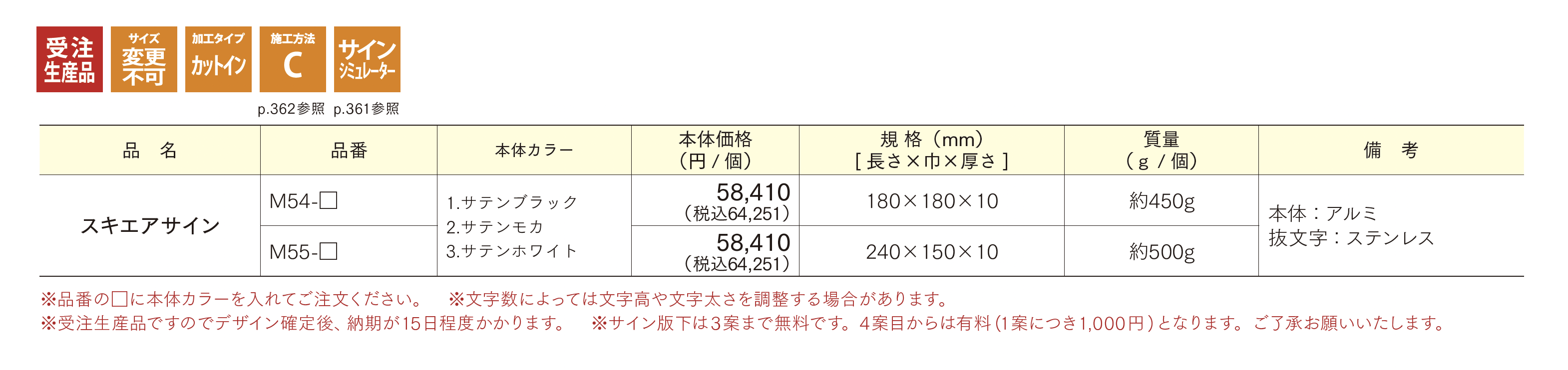 | 標準納期 | 受注生産品/15日程度 |