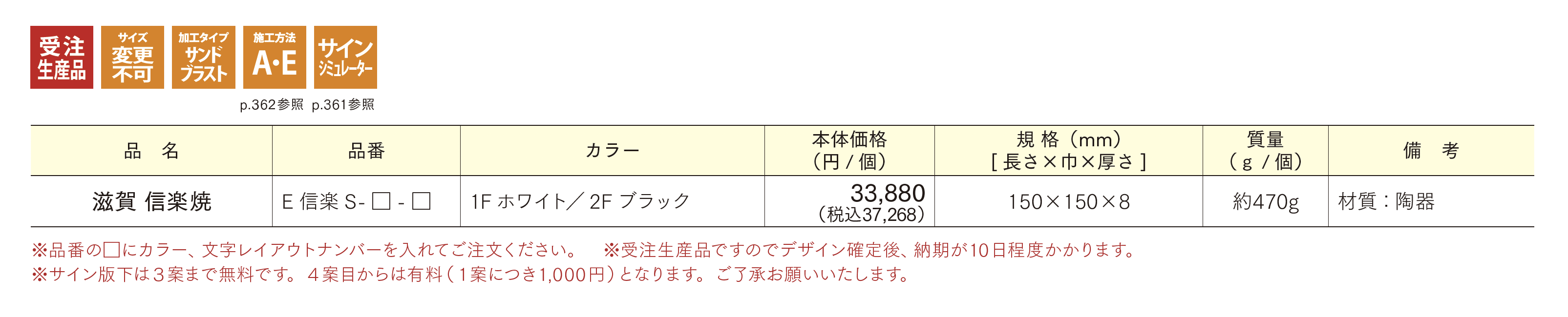 | 標準納期 | 受注生産品/10日程度 |
