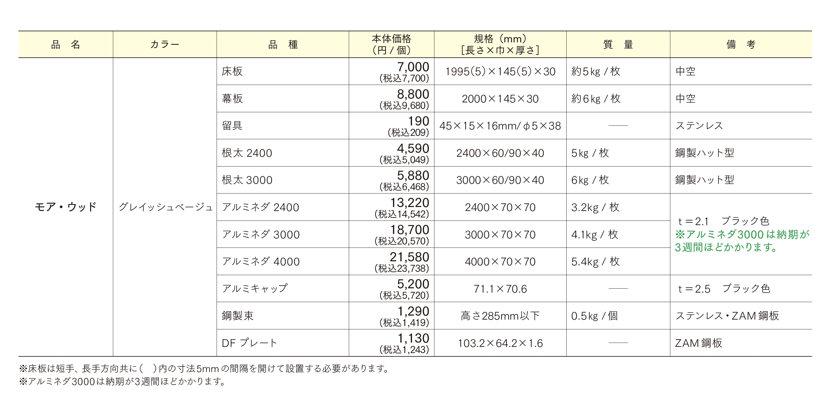 | 標準納期 | 3週間程度(アルミネダ3000) |