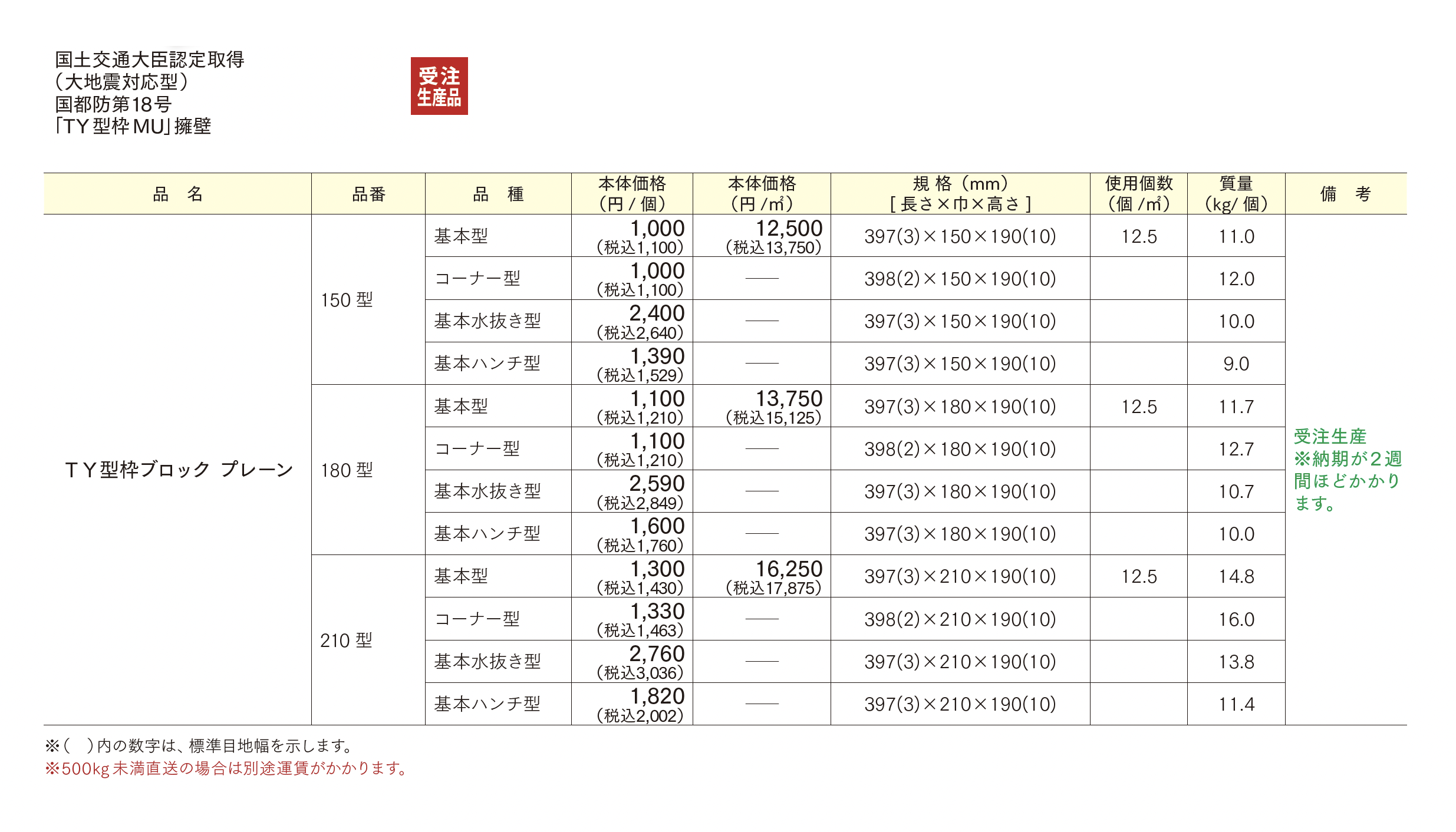 | 新旧品 | TY型枠ブロック プレーン【2025年版】(エクステリア商品総合カタログ2025-2026)TY型枠ブロック プレーン【2024年版】(エクステリア商品総合カタログ2024-2025) |
