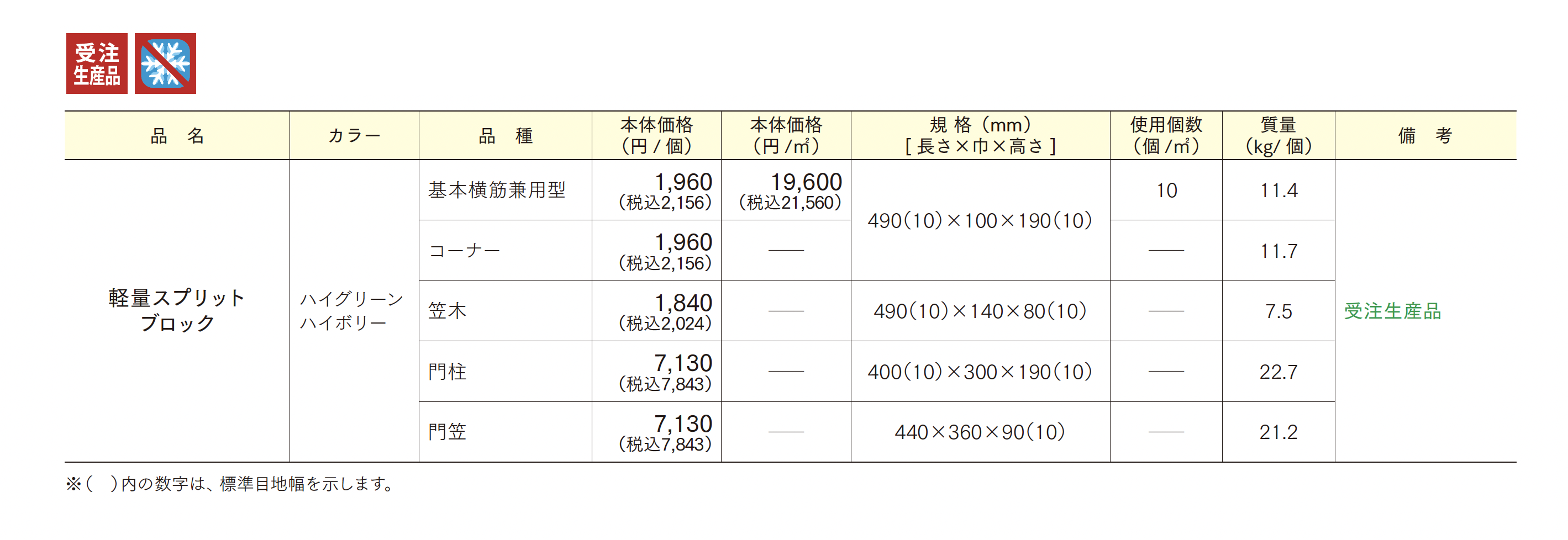 | 新旧品 | 軽量スプリットブロック【2025年版】(エクステリア商品総合カタログ2025-2026)軽量スプリットブロック【2024年版】(エクステリア商品総合カタログ2024-2025) |