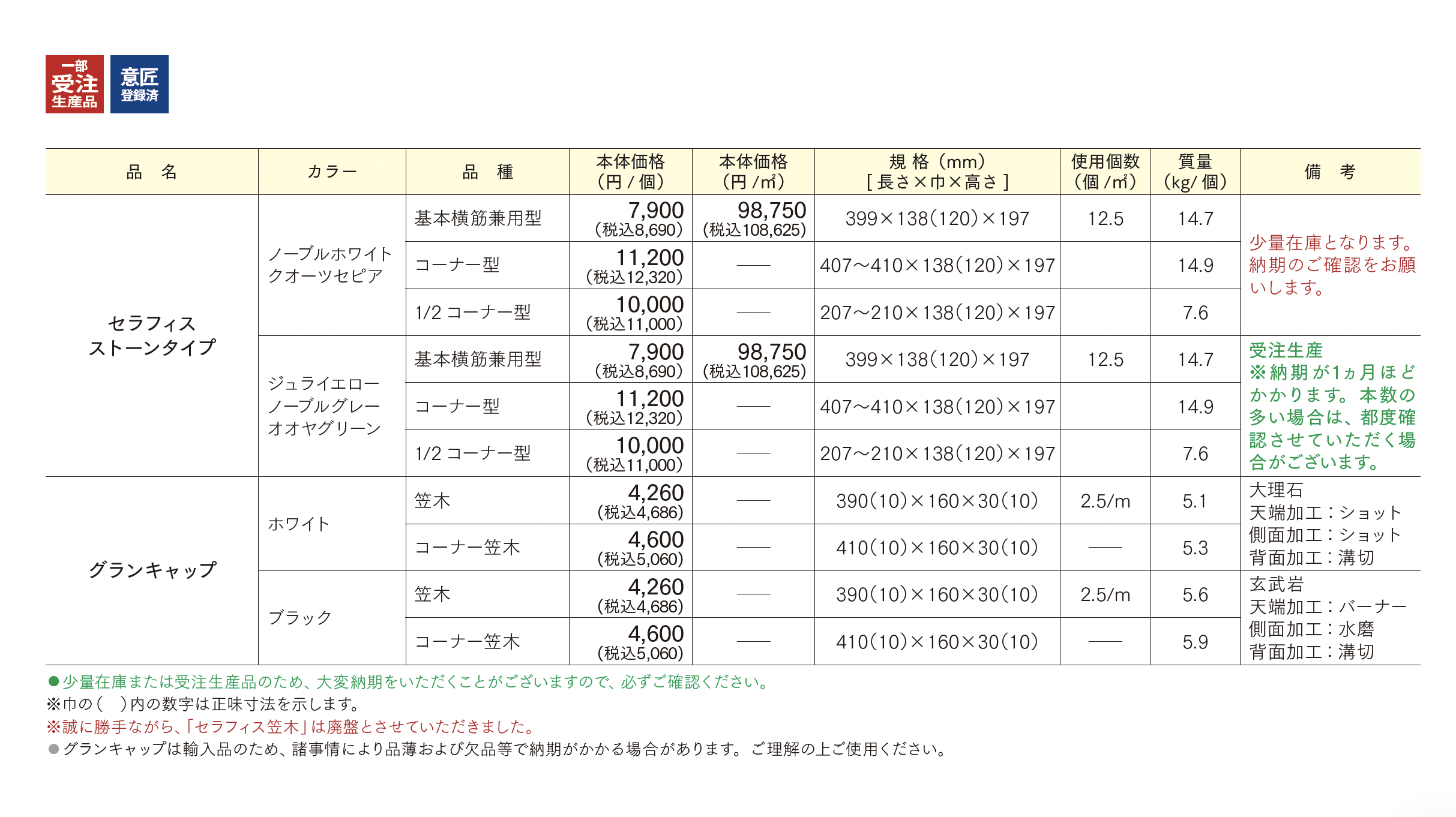 | 標準納期 | 一部受注生産品/要確認 |