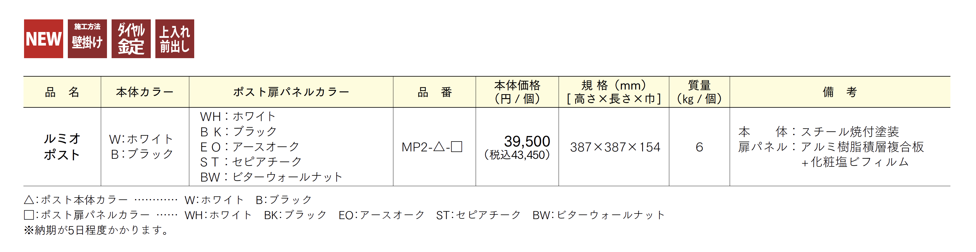 | 材質 | スチール焼付塗装 アルミ樹脂積層複合板+化粧塩ビフィルム |