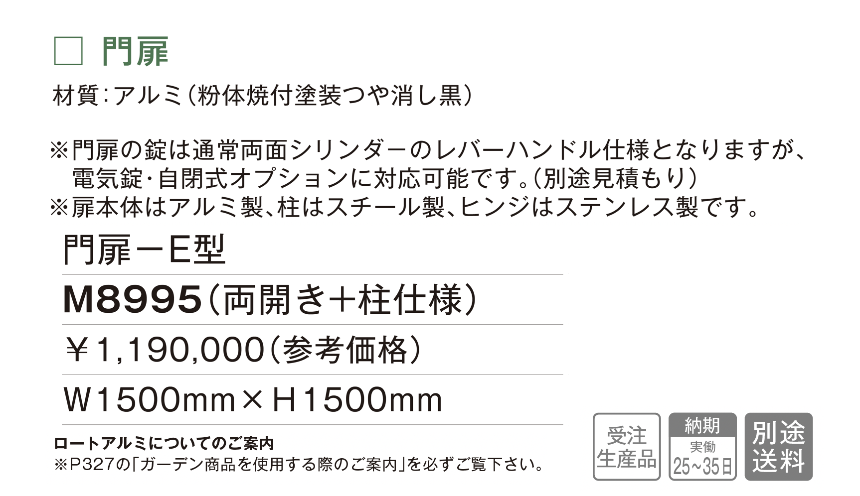 | 新旧品 | 門扉 E型【2025年版】(makeland All Items Catalog 2025-2026)門扉 E型【2024年版】(makeland All Items Catalog 2024-2025) |