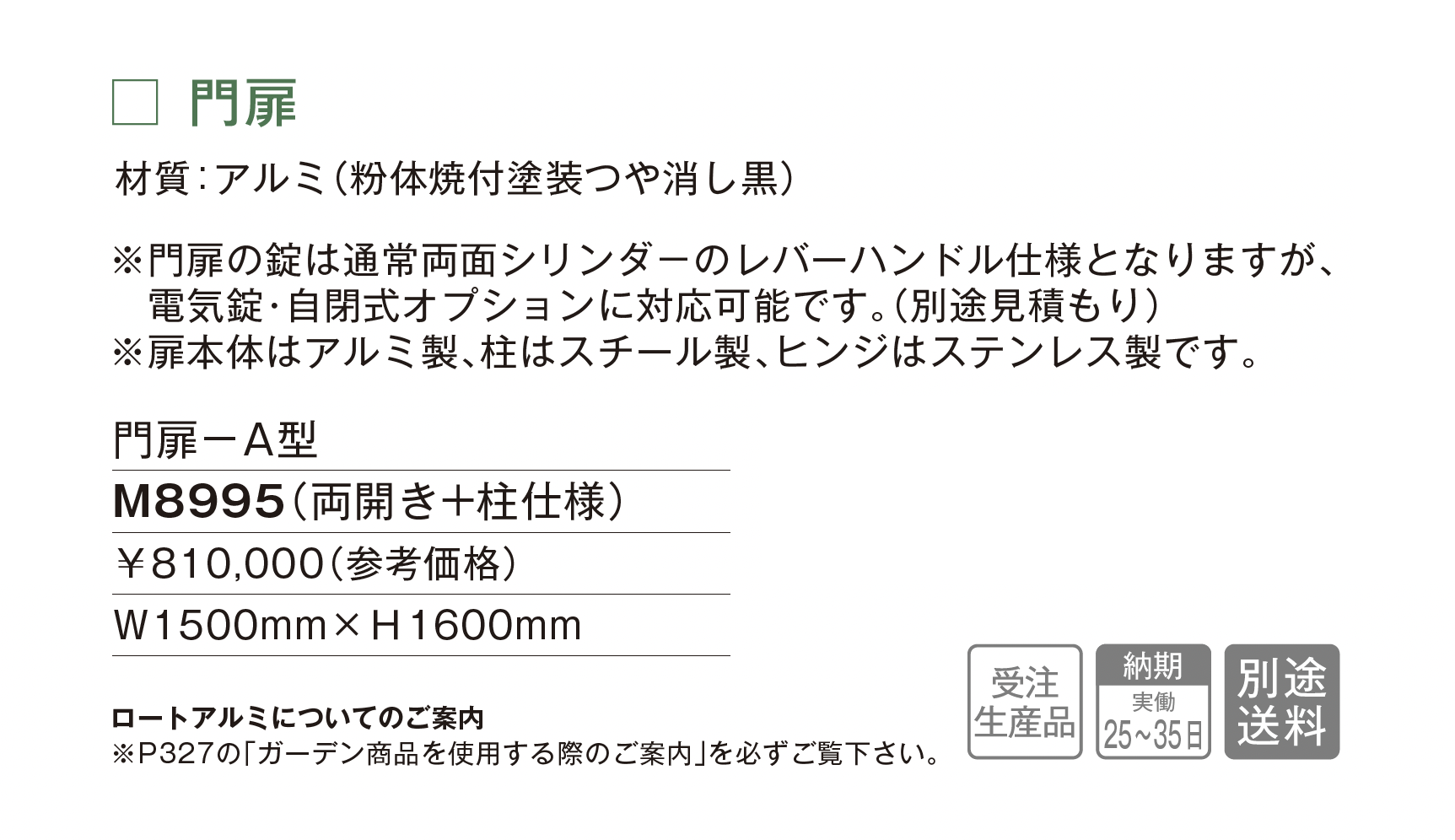 | 新旧品 | 門扉 A型【2025年版】(makeland All Items Catalog 2025-2026)門扉 A型【2024年版】(makeland All Items Catalog 2024-2025) |