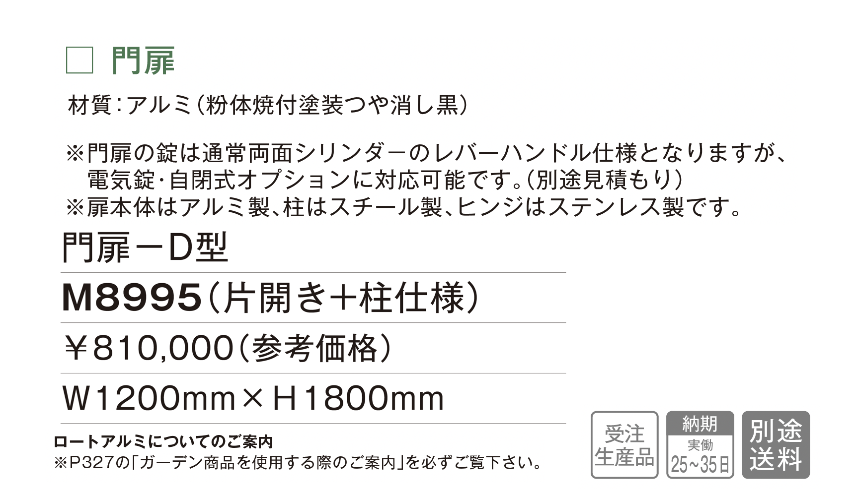 | 新旧品 | 門扉 D型【2025年版】(makeland All Items Catalog 2025-2026)門扉 D型【2024年版】(makeland All Items Catalog 2024-2025) |