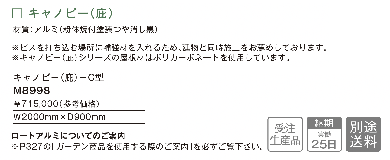 | 新旧品 | キャノピー(庇) C型【2025年版】(makeland All Items Catalog 2025-2026)キャノピー(庇) C型【2024年版】(makeland All Items Catalog 2024-2025) |